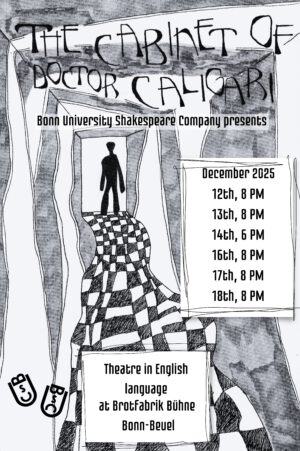 October 6th, 2024 – 5pm In cooperation with The Bonn English Singers under the lead of artistic director Stephen Harrap, the actors of the Bonn University Shakespeare Company will perform Shakespeare’s most inspiring, romantic, or heart-wrenching monologues, dialogues, and sonnets. Read more...